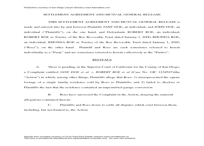 Settle claims and eliminate lawsuits. These are sample agreements and must be read carefully as the agreement may have unintended consequences.